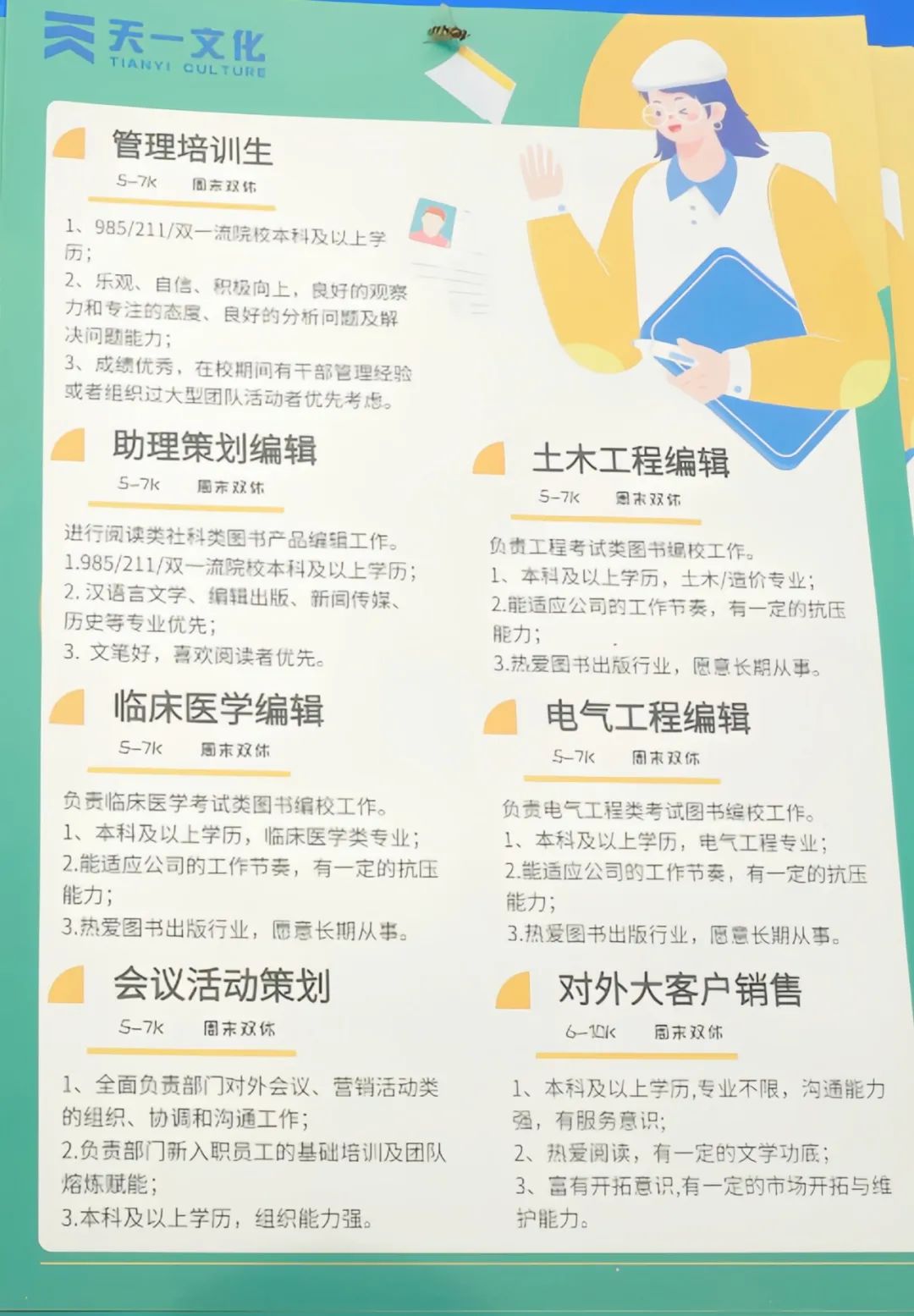 天一文化求职信投递邮箱:tywhhr@tywh.com