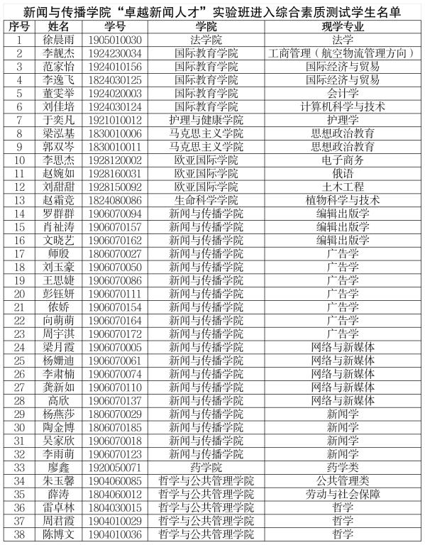 玩滚球官网“卓越新闻人才”实验班进入综合素质测试学生名单
