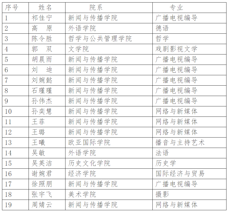 经过个人报名和资格审查,外围十大玩球app影视艺术研究所现公布入选本科生学术研修生名单如下: