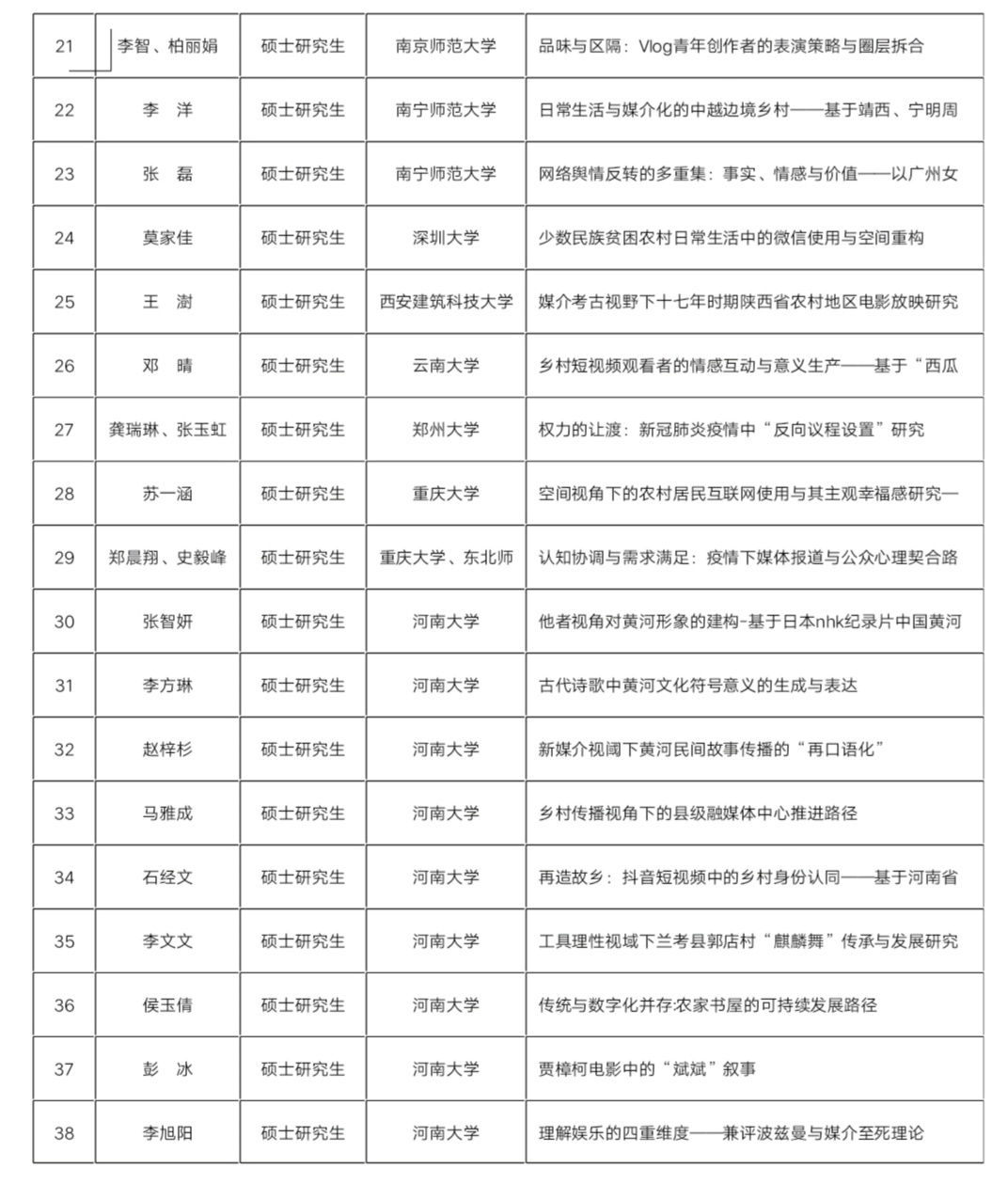 “第二届中原新闻与传播研究生学术论坛”入选论文